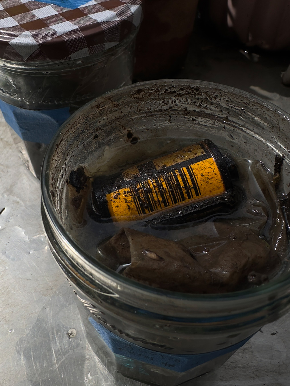 Para cada tramo del río, utilicé un rollo fotográfico que, posteriorimente, sumergí en una mezcla hecha del agua de río de esa sección con plantas, tierra y/o basura encontrados in situ.