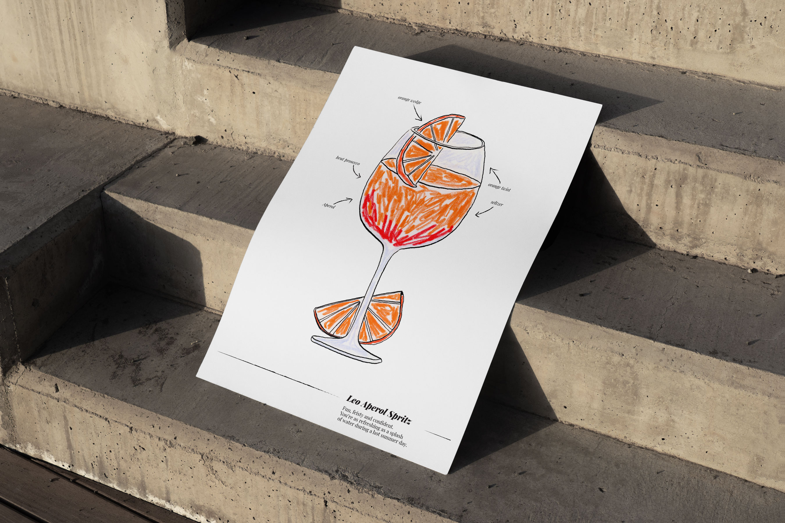 A partir de una narrativa anclada en la astrología, a cada cóctel le asigné un signo del zodiaco con una descripción breve de rasgos de personalidad.
