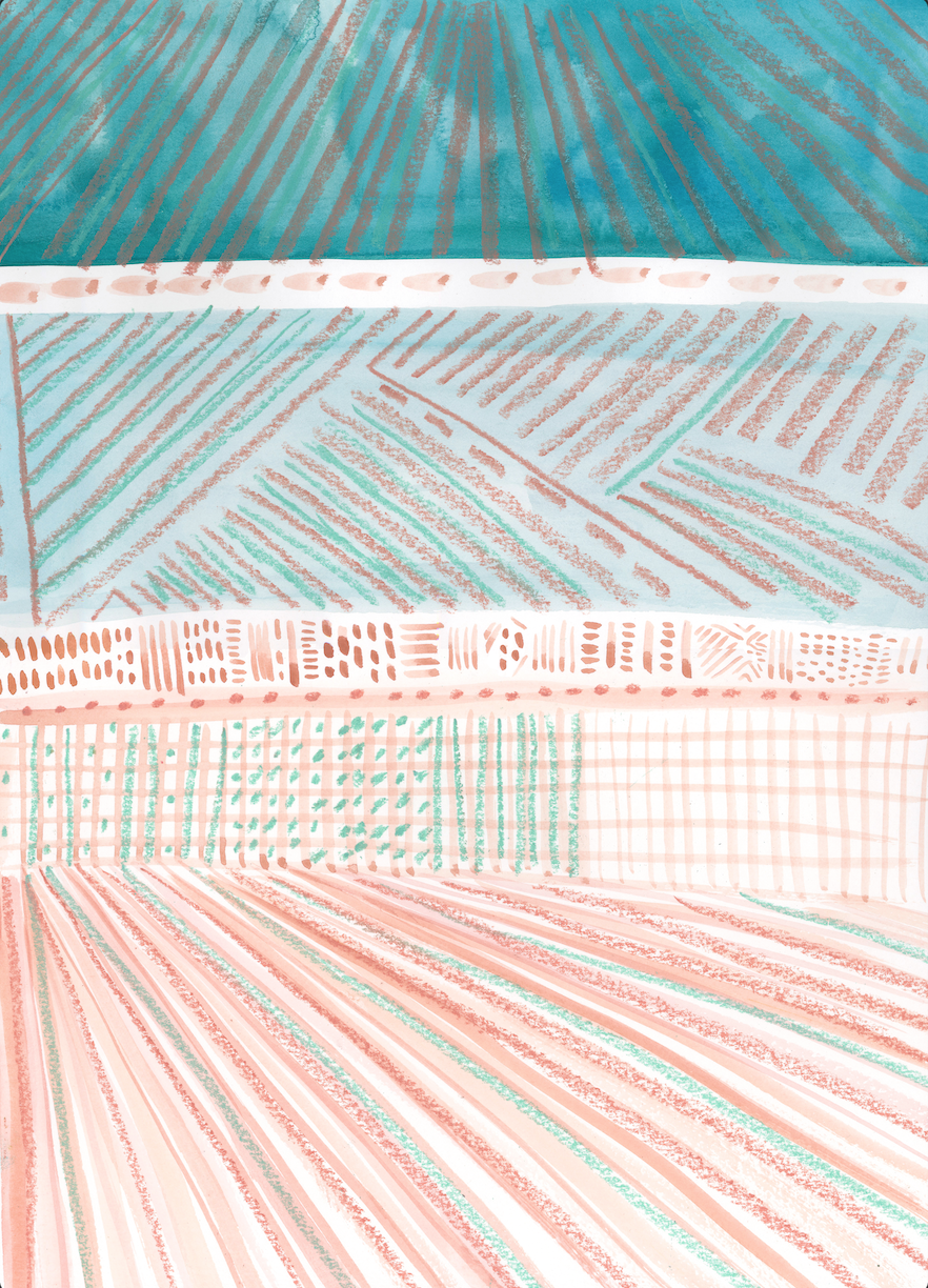 Yo trabajé en una serie de texturas con múltiples capas, representando el método de investigación preferido de User Interviews: el método mixto. Posteriormente, Olivia cortó figuras de estas texturas y realizó dibujos lineales encima, en un estilo garabato.